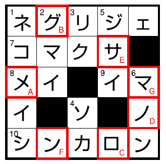 10月号のクロスワードの答えは「メグロノサンマ」でした。